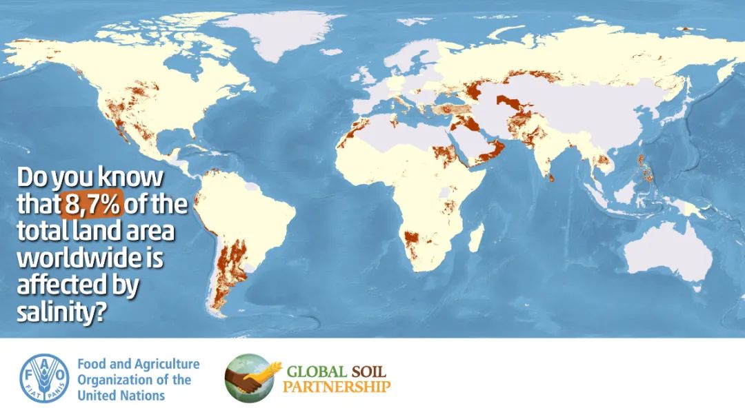 -糧農組織10月發布的全球鹽堿土壤分布圖顯示,全球超過8.33億公頃的土壤已經受到鹽堿化的影響。